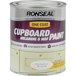 RONSEAL ONE COAT CUPBOARD PAINT. This MDF and melamine cupboard paint is ideal for use on kitchen units, cupboards , bedroom furniture, shelving and interior doors. This interior furniture paint transforms melamine , MDF , plywood and chipboard.
